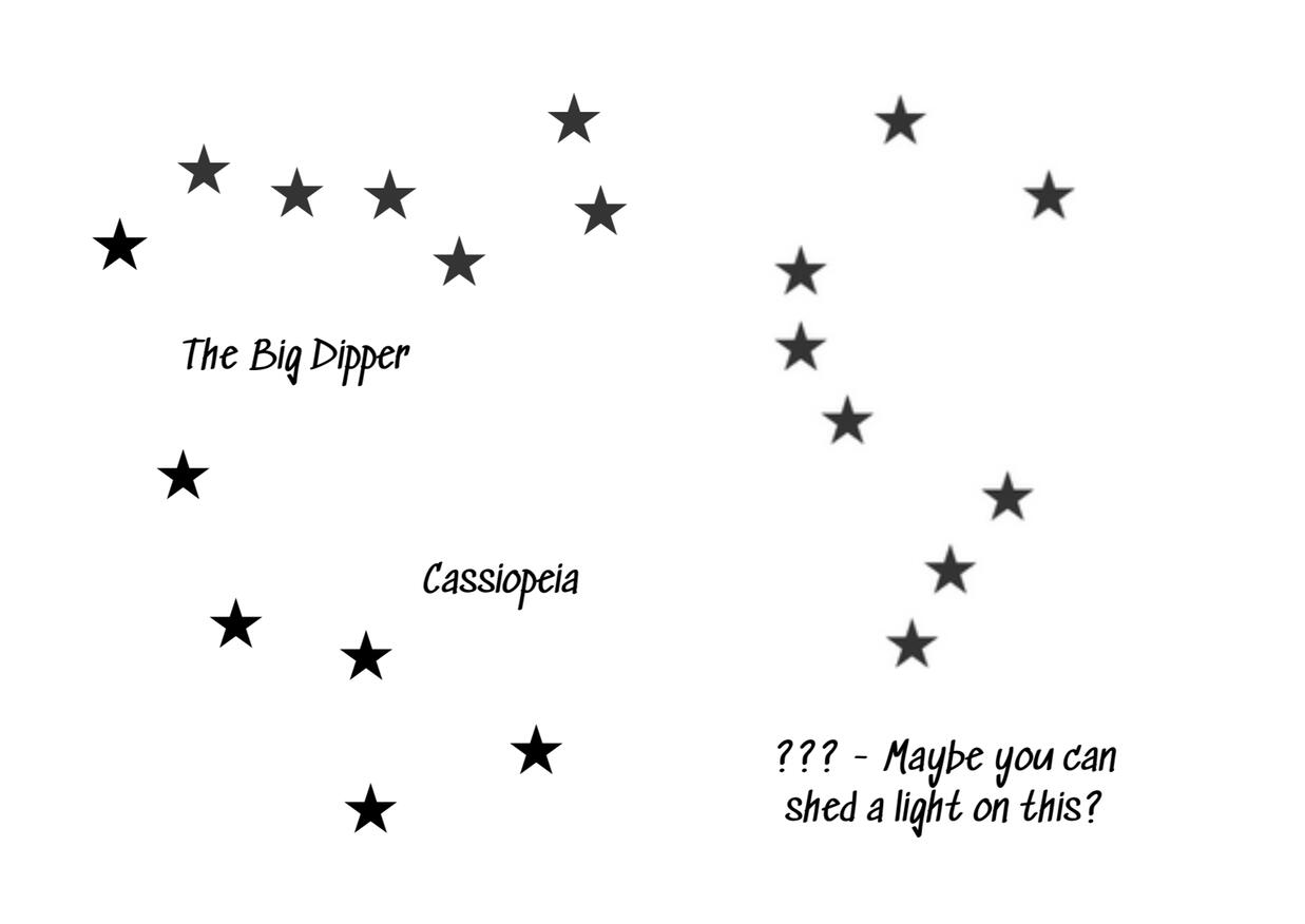 1. Well, that unlabelled constellation is weird. Perhaps shining a light through it will help?